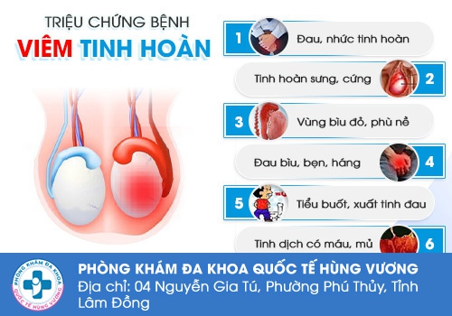 Phòng Khám Đa Khoa Quốc Tế Hùng Vương số 4 Nguyễn Gia Tú, P. Phú Thuỷ, Tỉnh Lâm Đồng – Tự hào là địa chỉ chuyên điều trị bệnh tinh hoàn chất lượng cao. Sự Uy tín – Chuyên nghiệp – Tận tâm đã giúp phòng khám vinh dự được đông đảo bệnh nhân tin tưởng lựa chọn. Với quy trình nhanh gọn, các bác sĩ chuyên khoa giỏi cùng cơ sở vật chất hiện đại, máy móc, thiết bị y tế tiên tiến cho kết quả nhanh, chính xác.